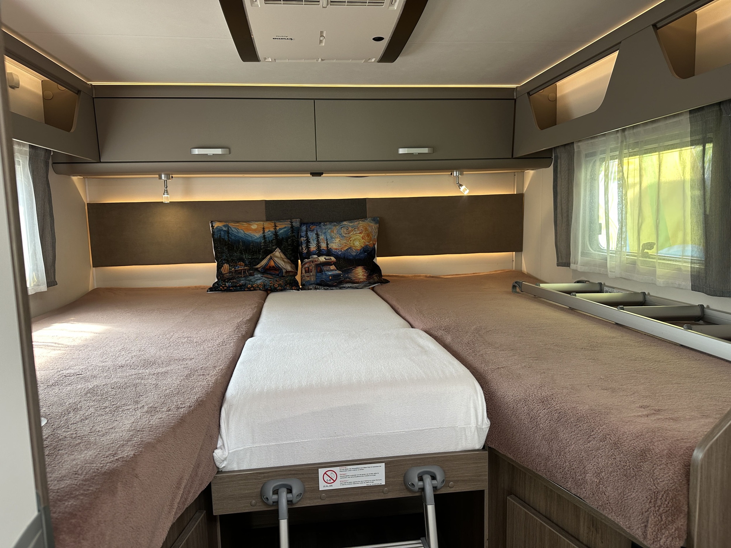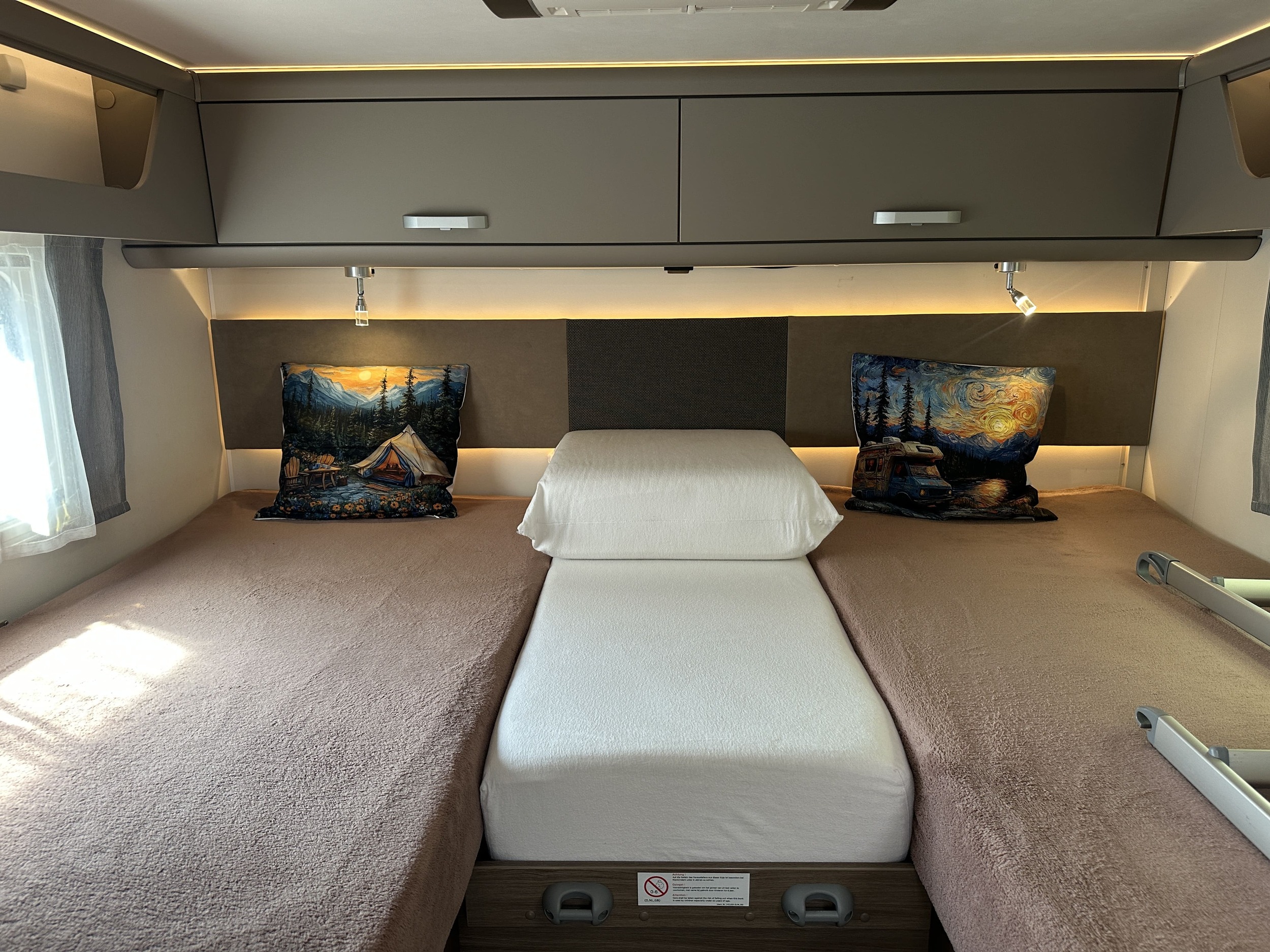 Cruise control + board computer | Luxurious interior, Hypoallergenic mattresses | Insulated and heated waste water tank 120L |