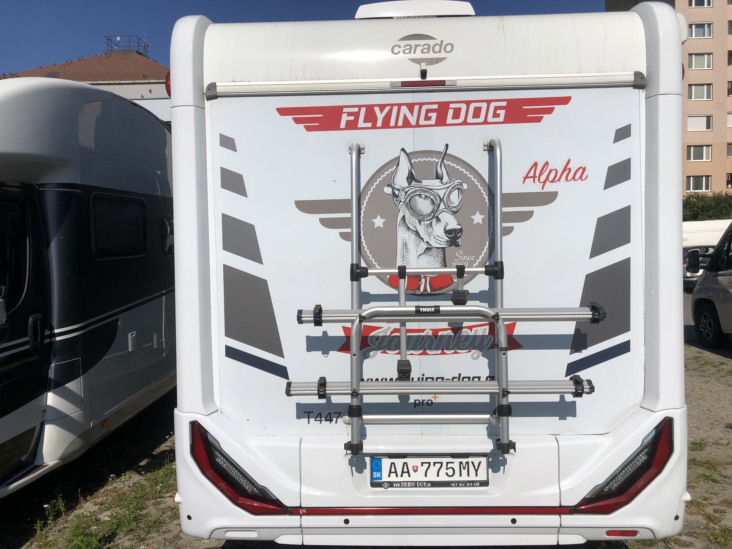 Outdoor carrier FIAMA for 3 bicycles | Basic Package: Heki Midi, Mini Heki, Wooden grate in the shower, Hangers, Cabin darkening | Safety Package: Emergency brake, Lane departure warning, High beam assistant, Traffic sign detection, Light and rain sensor |