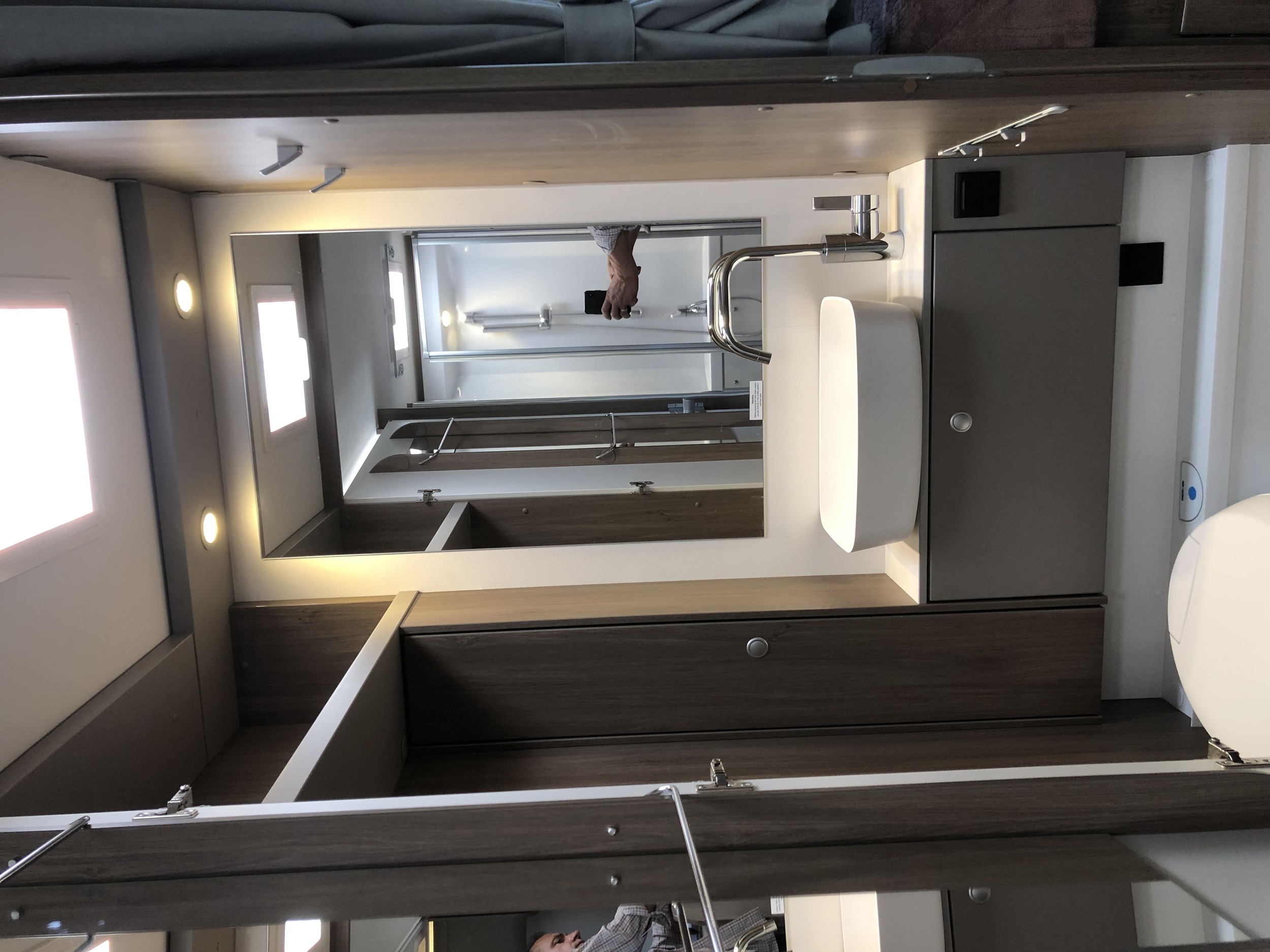 The possibility of mounting a towing device up to 2 tons | Separate luxury shower room, WC + bathroom - separately | Reverse camera system. 4-point rear parking sensors |